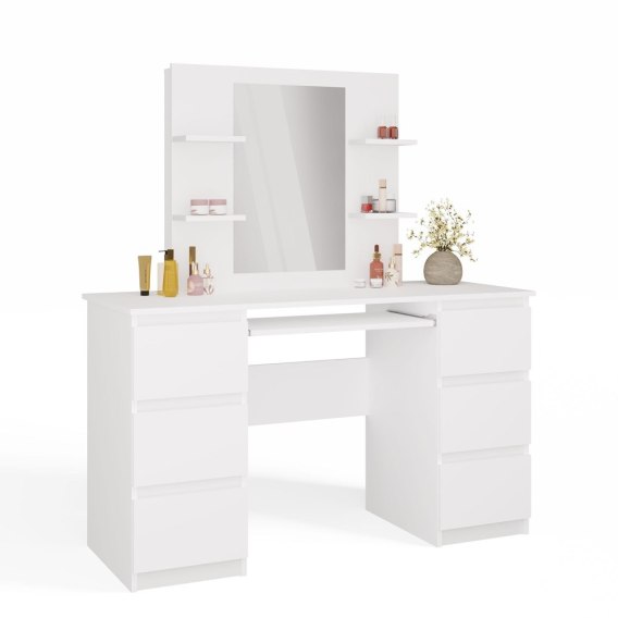• ELEGANCKA TOALETKA MARINA DO MAKIJAŻU LUSTRO 4 PÓŁKI 6 SZUFLAD BIAŁY MAT