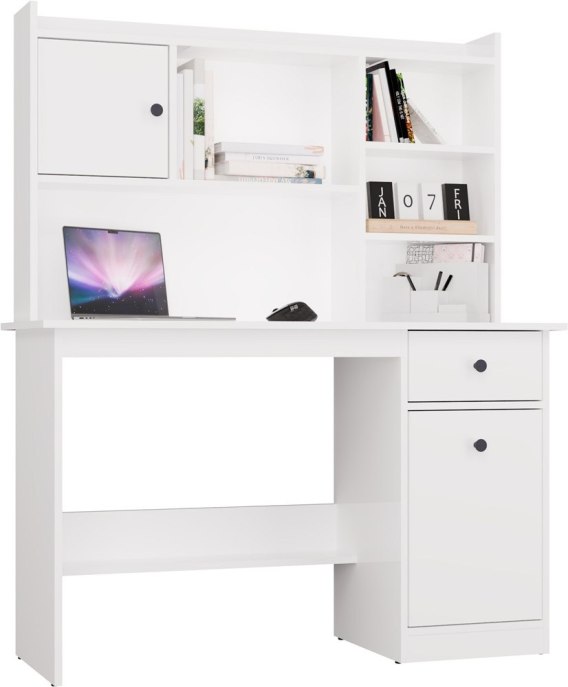 FUNKCJONALNE BIURKO CHESTER 120CM Z NADSTAWKĄ SZUFLADA PÓŁKI BIAŁY MAT
