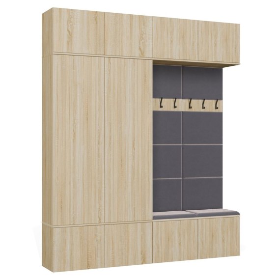 • GARDEROBA HAGA DO PRZEDPOKOJU 2X SZAFA 2X WIESZAK Z SIEDZISKIEM DĄB SONOMA