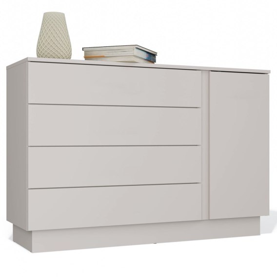 Nowoczesna komoda AMBER 1D4S to połączenie minimalistycznego stylu z funkcjonalnością, które sprawdzi się zarówno w salonie, sypialni, jak i przedpokoju. Dzięki kompaktowym wymiarom i uniwersalnej kolorystyce, wpasuje się w niemal każdą przestrzeń.